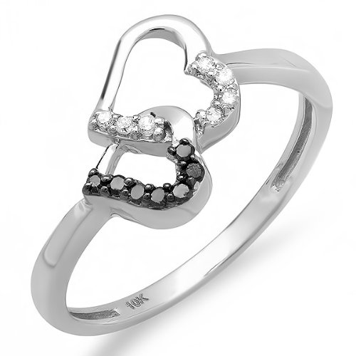 0.15 Carat (ctw) 10k White Gold Round Black and White Diamond Ladies Promise Double Heart Love Engagement Ring Review
